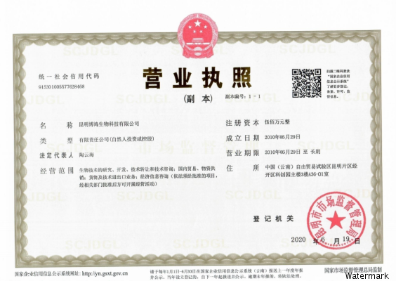 企业营业执照(原昆明博鸿生物科技有限公司)